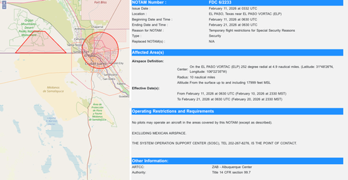 - “Special Security Reasons”: FAA Abruptly Halts All Flight Operations Above U.S. Border Town El Pasoby Tyler Durden on February 11, 2026 at 11:55 am